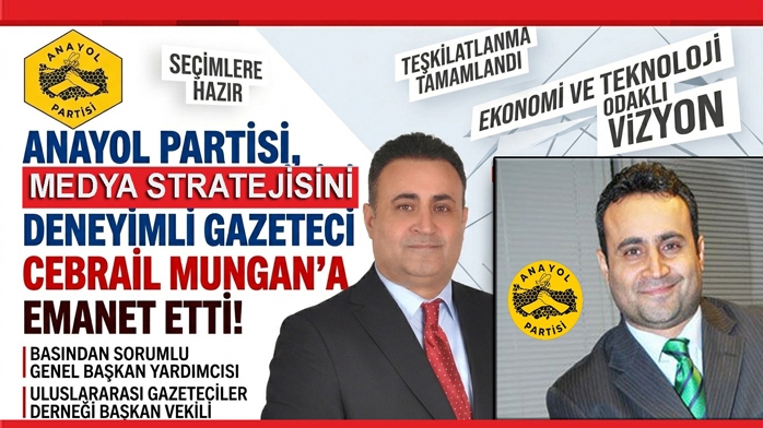 Merkez sağın yükselen yıldızı Anayol Partisi, Türkiye genelinde teşkilatlanma çalışmalarını tamamlayarak seçim sath-ı mailine girerken, medya ve kamuoyuyla iletişim stratejisini yönetmek üzere basın dünyasının deneyimli ismi, gazeteci ve televizyon yapımcısı Cebrail Mungan’ı kadrosuna kattı. Partinin Basından Sorumlu Genel Başkan Yardımcısı olarak atanan Mungan, Anayol Partisi’nin vizyonunu halka ulaştırma konusundaki en önemli figürlerden biri olacak.