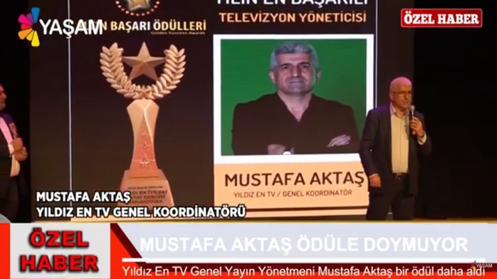 Bugüne kadar bir çok kez başarı ödülüne layık görülen yılların televizyoncusu Yıldız En TV Genel Yayın Yönetmeni Mustafa Aktaş’a bir ödül daha verildi.